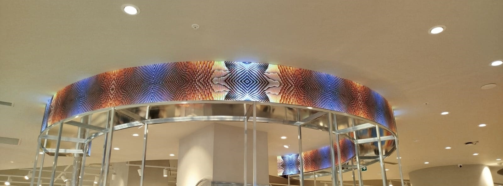 Esnek LED ekran çözümlerimiz ise, yaratıcı tasarımın sınırlarını ortadan kaldırarak özgün formlarda dijital yüzeyler oluşturma imkânı sunar. Silindirik kolonlar, kavisli duvarlar, dalgalı yüzeyler ve sahne dekorları gibi geleneksel ekran panelleriyle uyumsuz alanlarda dahi yüksek çözünürlüklü ve canlı görseller elde edilebilmektedir. Ultra ince ve modüler yapıları sayesinde kolayca monte edilebilen bu ekranlar, düşük enerji tüketimi ve uzun ömürlü performansıyla hem ekonomik hem de çevreci çözümler sunar. Sahne sanatları, müze uygulamaları, etkinlik alanları ve tematik mekânlarda etkileyici görsel efektler yaratmak için ideal bir tercihtir.